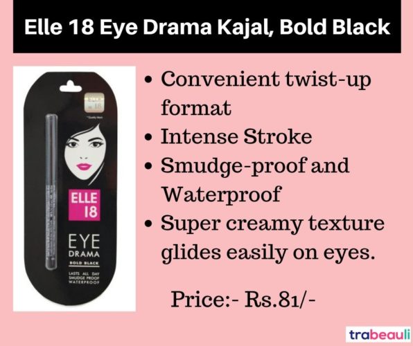 A good product from Elle18. It has a super creamy soft texture and glides very smoothly on the eyes. It gives your eyes a glossy finish and also smokey look. It is smudge-proof and waterproof and suits perfectly for sensitive eyes. Lasts around 8-9 hours.
