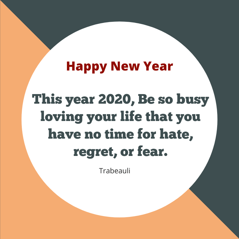 - This year 2020, Be so busy loving your life that you have no time for hate, regret, or fear.