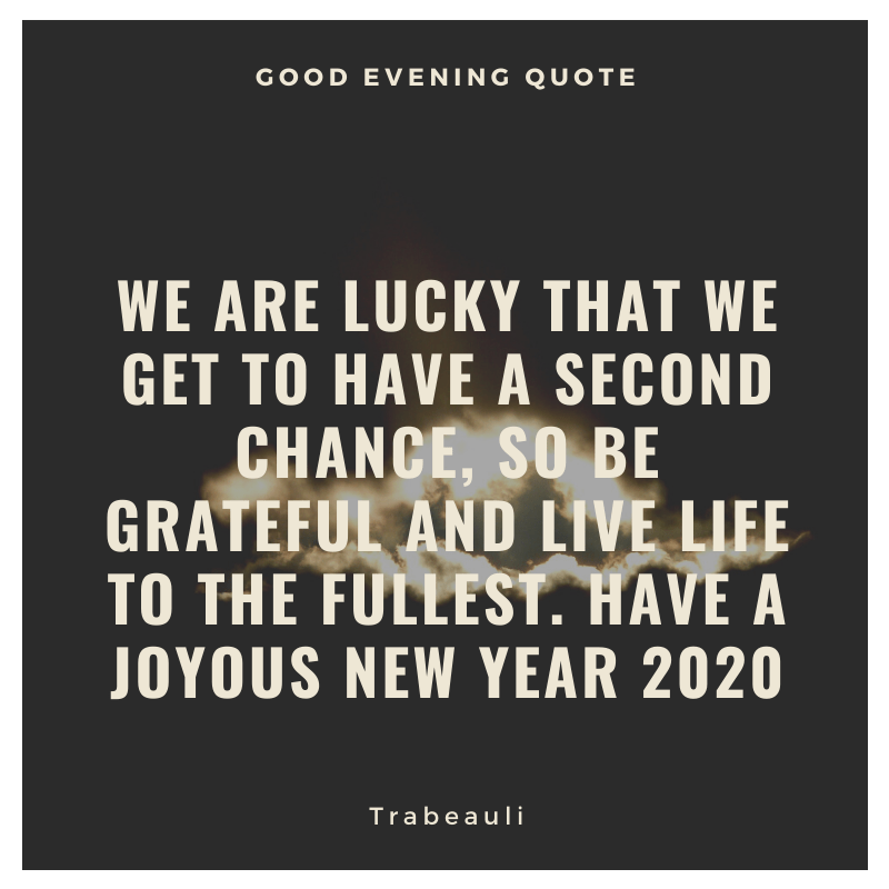- We are lucky that we get to have a second chance, so be grateful and live life to the fullest. Have a joyous New Year 2020!