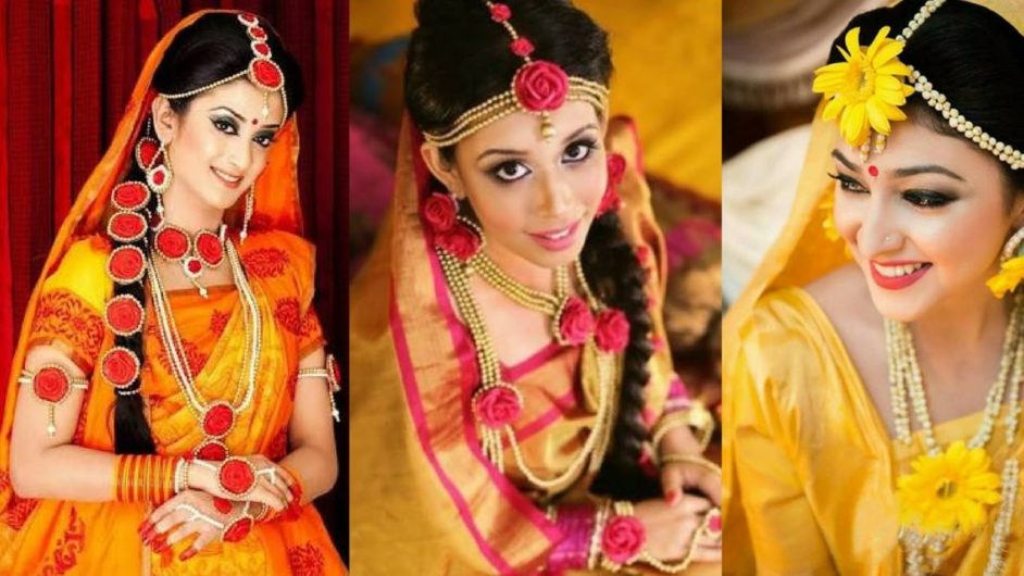 - Floral Jewelry is gaining huge popularity at weddings because they are unique & look amazing. Floral jewelry can be worn by brides on their Haldi and Sangeet function to match their dress.