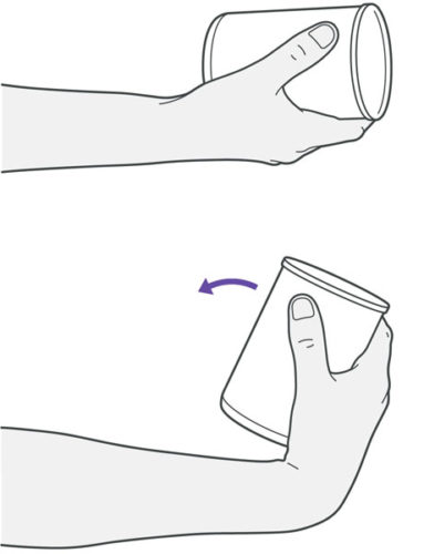 - Bend the elbow at a right angle with the hand’s palm up and flat