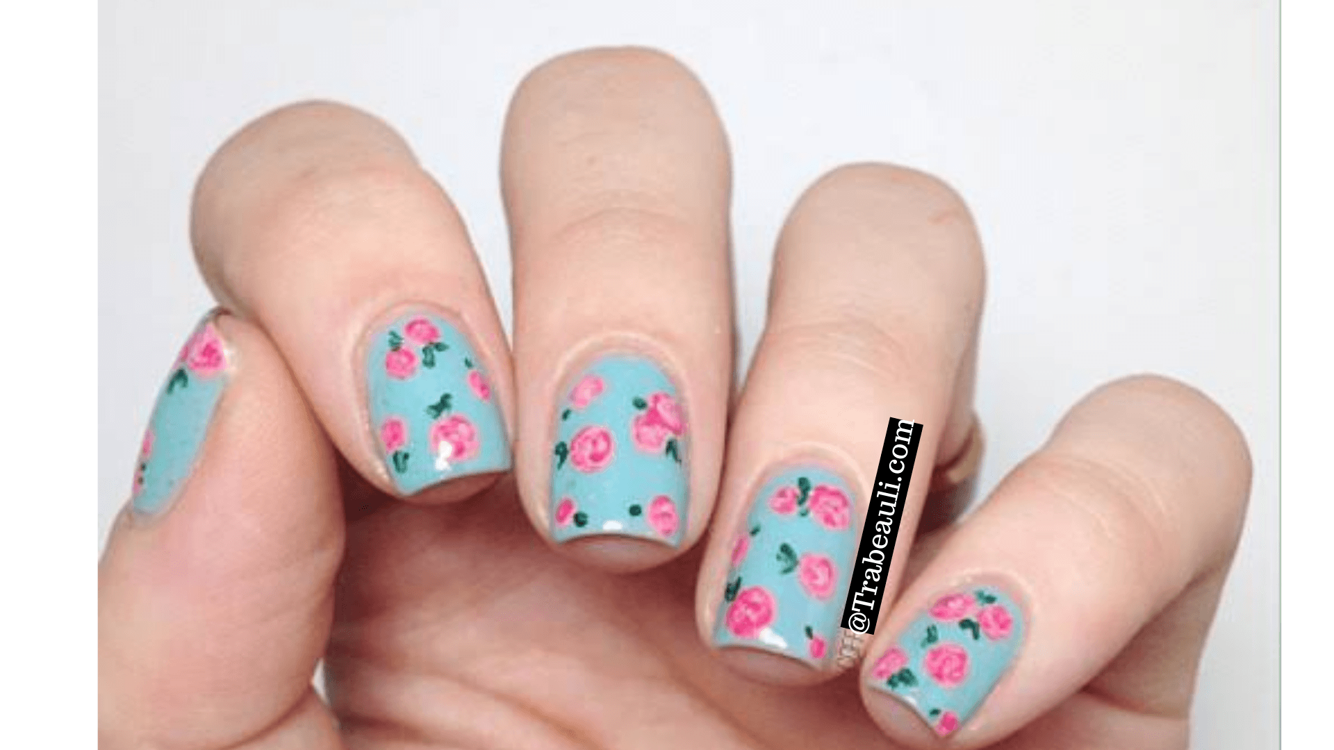 - Now with aqua blue color, make the tropical flower at the other end of the nails.