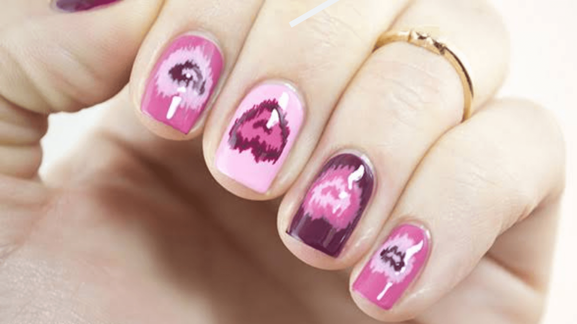 - Paint the nails of the thumb, index, and middle fingers pink.