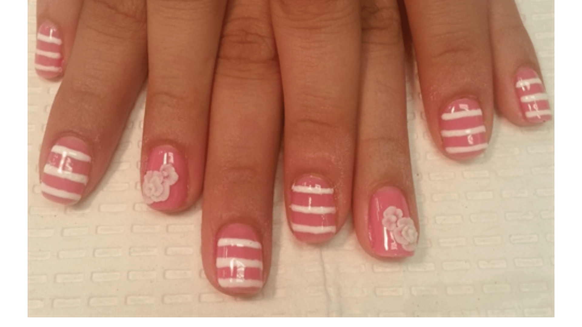 - Paint your nails with white and pink color alternatively