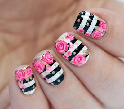 This Rose and Stripes nail art looks quite cute. I love Valentines Day Nails Designs.