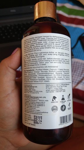 WOW Apple Cider Vinegar shampoo claims it is free from Paraben and Sulfates. It is also stated to be made of Ecocert certified ingredient. It claims it is made up of 100% natural Himalayan Apple Cider Vinegar. ACV is known for its detox property and is effective in removing dirt and product build-up.