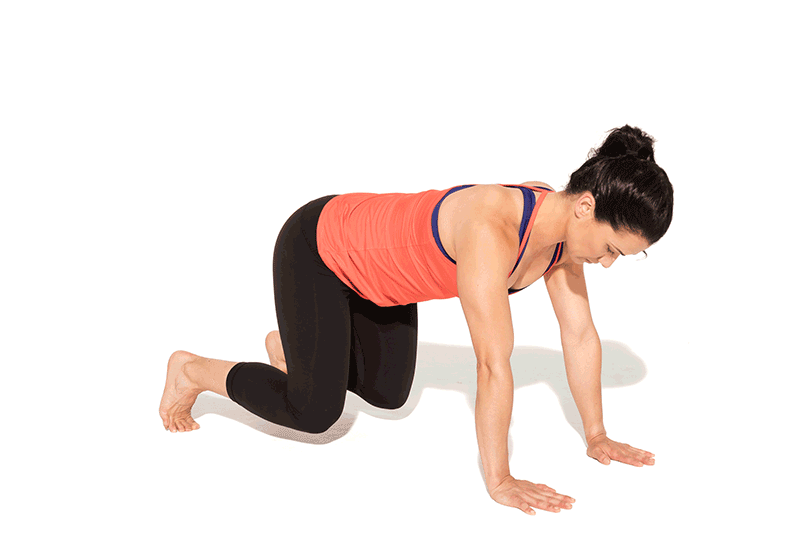 - Start on all fours with your knees under your hip and your hands flat on the floor.